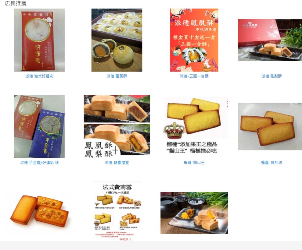 派德食品企業有限公司 ( 派德 伴手禮 ) (台北汐止 伴手禮) (企業 伴手禮) (法式 費南雪 禮盒, 鳳凰酥 禮盒,鳳梨酥 禮盒, 伴手禮,蛋黃酥 禮盒,中秋節 送禮, 月餅禮盒 ,三國一合酥 禮盒 , 港式 蘿蔔糕 )中秋送好禮 ,鳳凰酥 (全館買10盒送1盒) ~ 有鳳來儀 ~ 最佳 伴手禮 點此下單 中秋預購開跑:並堅持採用 紐西蘭進口優質頂級奶油 烘焙出 *金* 黃* 香* 酥* 的外皮. 堅持以 ※健康~※美味~※純天然~為訴求。手機:0910160555電話:02-26945251傳真:02-26945250信箱:a048123456@gmail.com地址:221新北市汐..